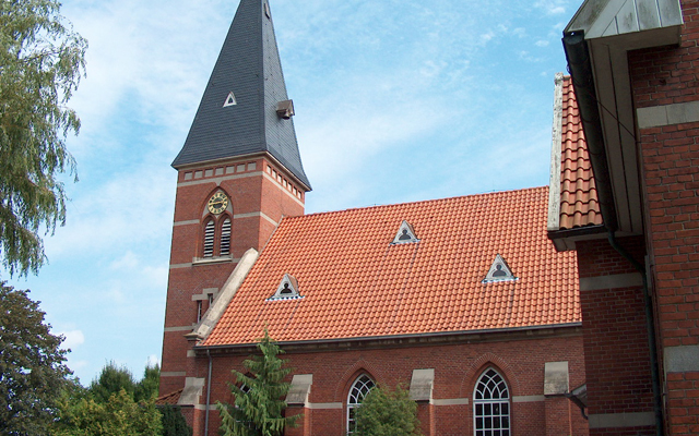 Ein stattlicher Bau ist diese Kirche mit neogotischen Stilelementen und einem 38 Meter hohen Turm, den man schon von weitem im flachen Land ringsum ausmachen kann. Ihr schlichtes Inneres wird geprägt von der Kanzel im Empire-Stil, die ursprünglich ihren Platz im 1803 entstandenen Gotteshaus der französisch-reformierten Kirche in Emden hatte.